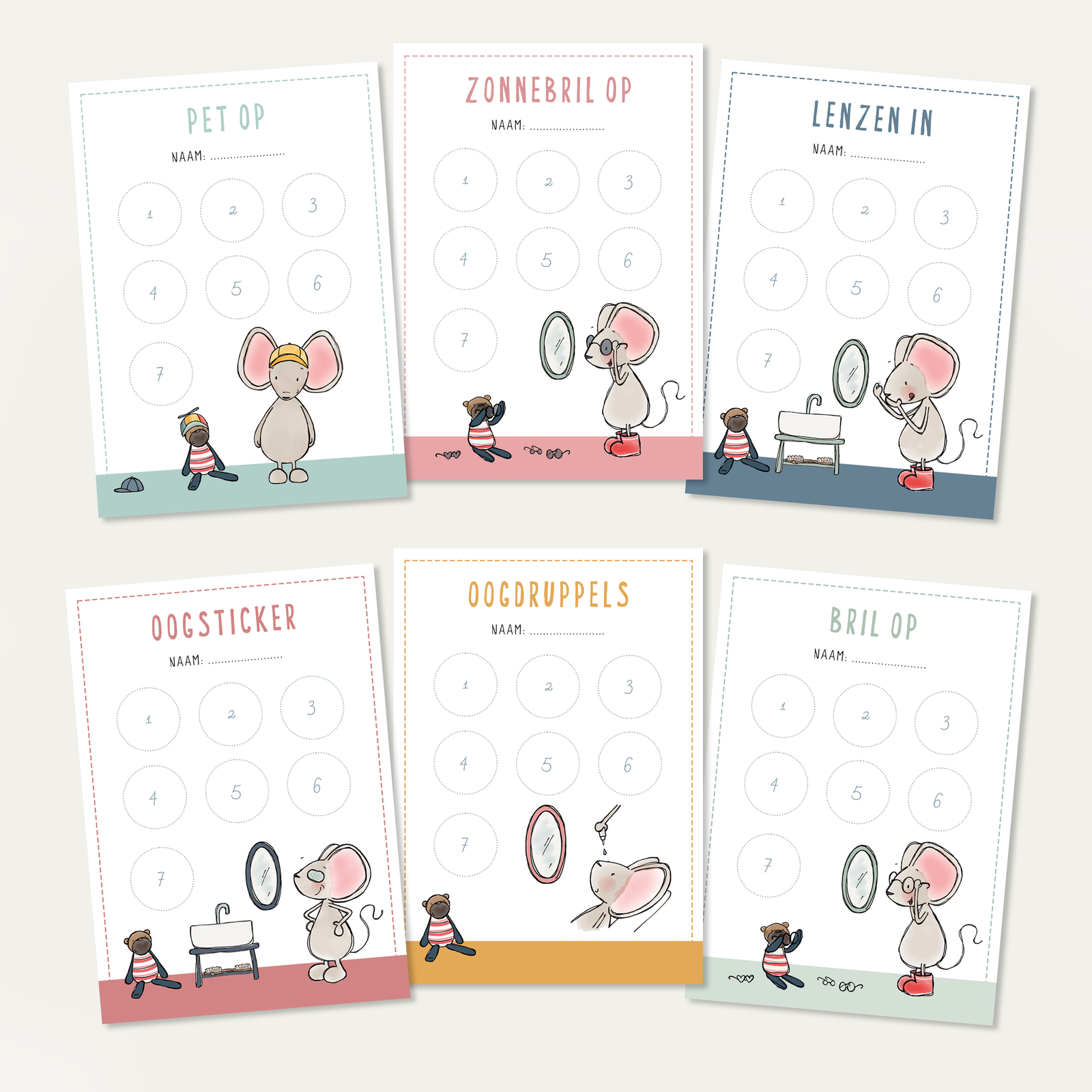 Deze 6 vrolijke beloningskaarten zijn speciaal gemaakt voor kinderen met een visuele beperking die wat hulp kunnen gebruiken bij het wennen aan nieuwe handelingen zoals; bril op doen, oogjes druppelen en pet dragen.