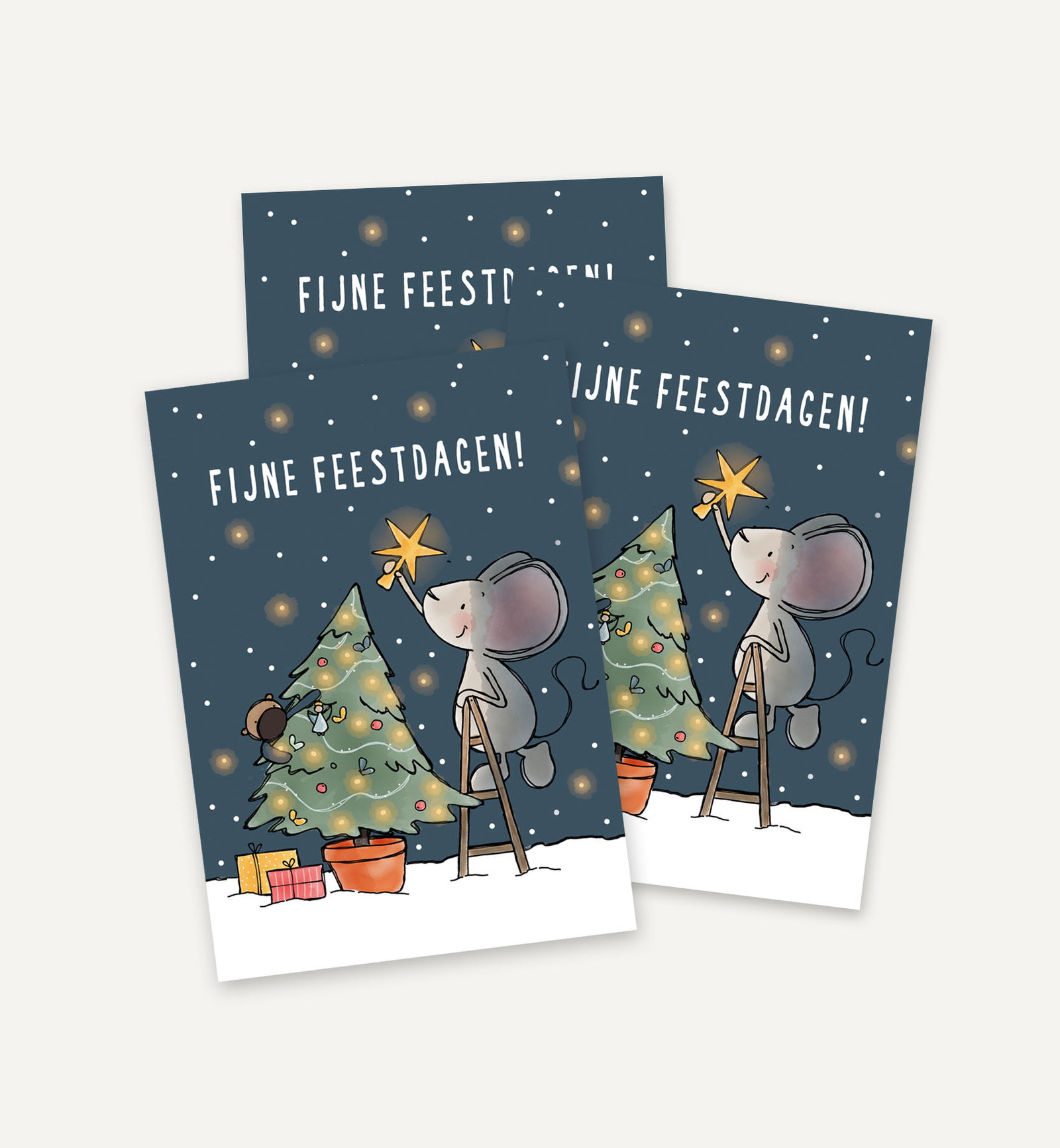 Een vrolijke set met 6 kerstkaartjes van Muis!