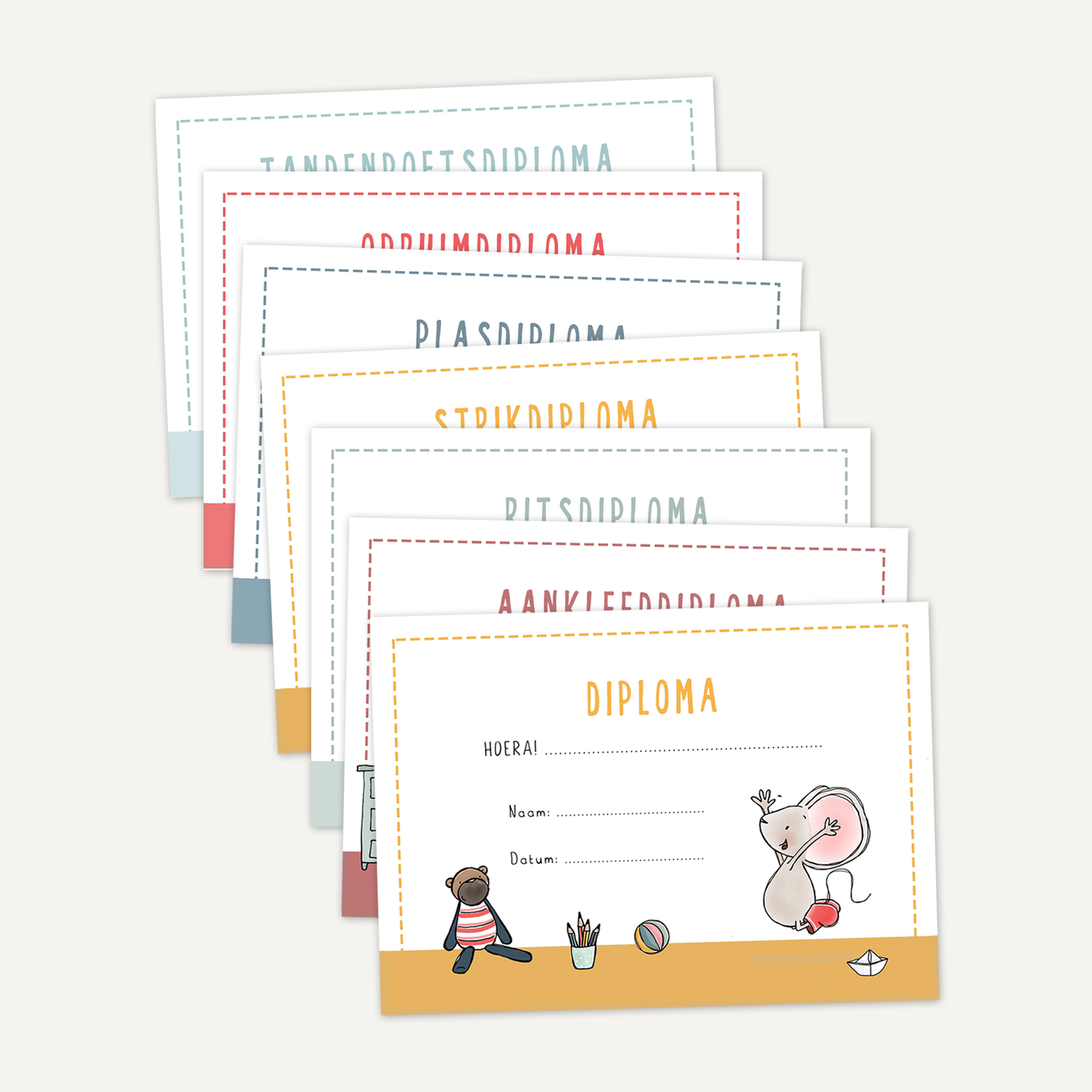 Hoera, ik kan het al helemaal zelf! Een pakket met acht mooie diploma’s om iedere mijlpaal te vieren.